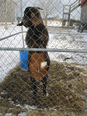 And, yes, we do have Gabby's head locked in the gate door. We thought it might help the young buck out a bit. But either he isn't measuring up and really is a dud stud or the girls simply aren't in heat anymore.