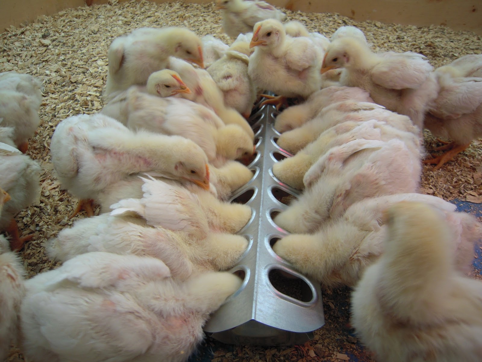 My 50 broiler chicks at week 2. We lost two during the heat wave here when the greenhouse got to hot, but I had counted and we had two extra. These guys are fiesty, hungry little buggers. You may notice blood on some of the chickens, they are so hungry they are beginning to eat each other.