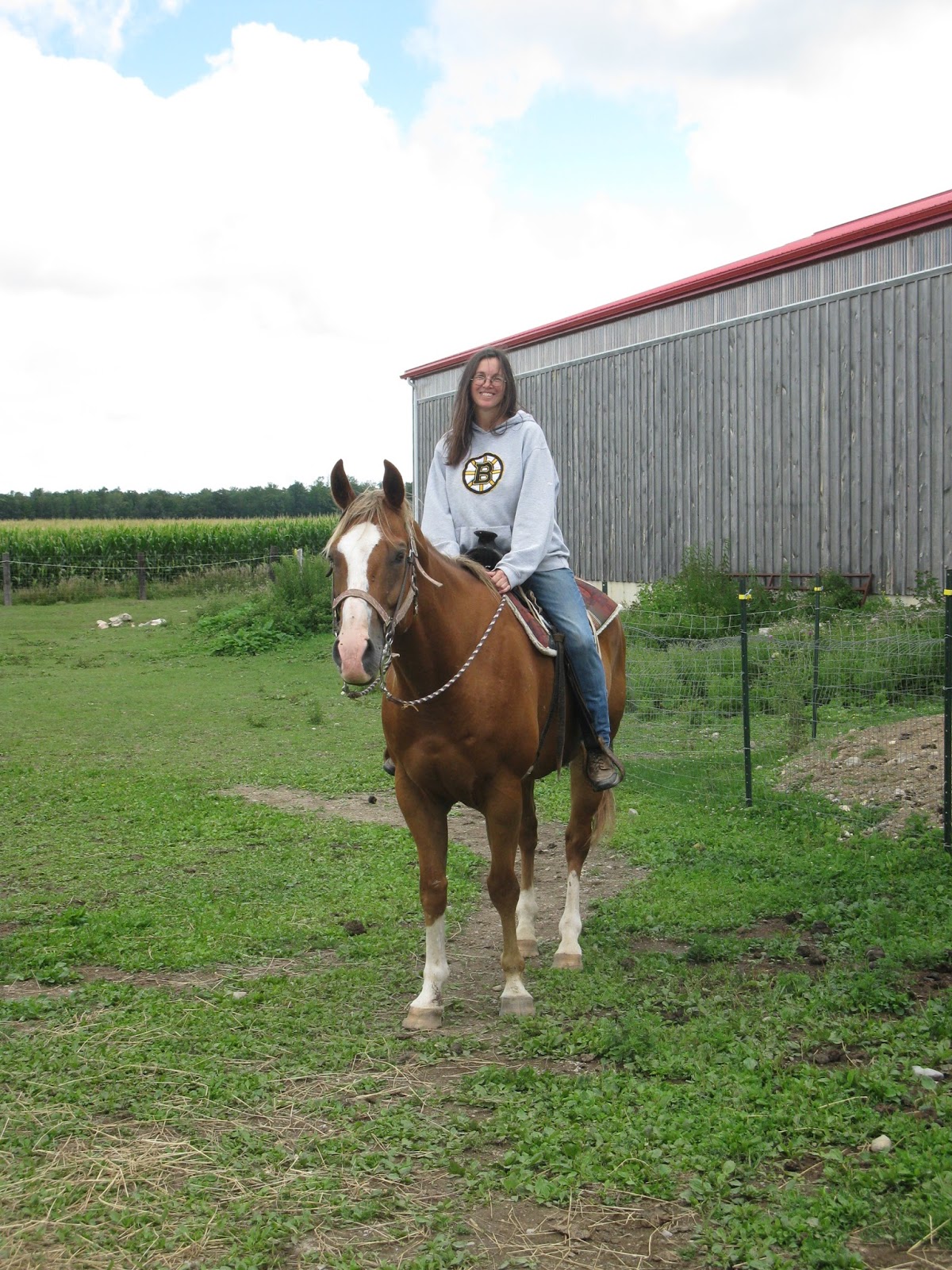 Aussie is my big, lovable teddy bear of a horse. But my few short experiences riding him last year, left me uneasy on his back. So I didn't feel comfortable jumping up onto him particularly with Farm Girl away, so he was delegated to pet only and I enjoyed him in the field but that was it. Until today. I conquered my fears and pulled him in out of the pasture, tacked him up, and feeling unusually brave, mounted him.